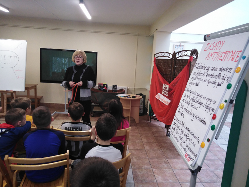 W dniu 10 grudnia, uczennice i uczniowie klasy 5c wraz z wychowawcą p. Agnieszką Kuźniarowicz-Grudą wybrali się do biblioteki dla dzieci,, Chotomek w Płocku na lekcję dotyczącą zjawiska hejtu. Dzieci dowiedziały się, czym jest hejt, jakie są jego przyczyny i skutki, a także poznały sposoby przeciwdziałania hejtowi i pomagania jegoofiarom. Zajęcia okazały się bardzo ciekawe i pomocne.