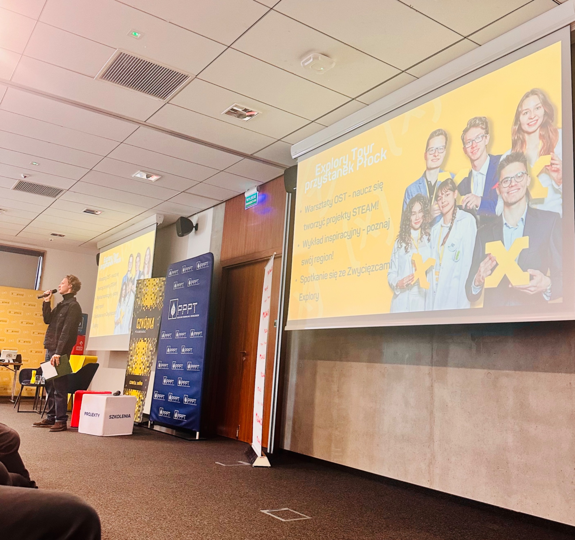 W Płockim Parku Technologicznym młodzież naszej szkoły miała okazję do zadawania pytań zwycięzcom poprzednich edycji Explory, którzy podzielili się przepisem na sukces, tłumacząc m.in. kompetencje kluczowe XXI wieku 4K, zakładających: krytyczne myślenie, kooperację, kreatywność i komunikację. Zapoznali się ofertą edukacyjną najlepszych uczelni w swoim regionie i brali udział w warsztatach z tworzenia projektów STEAM, by wziąć do siebie sugestię, że innowacje powstają właściwie z trzech bodźców: zaciekawienia, pomysłu i emocji. To był dobry dzień!