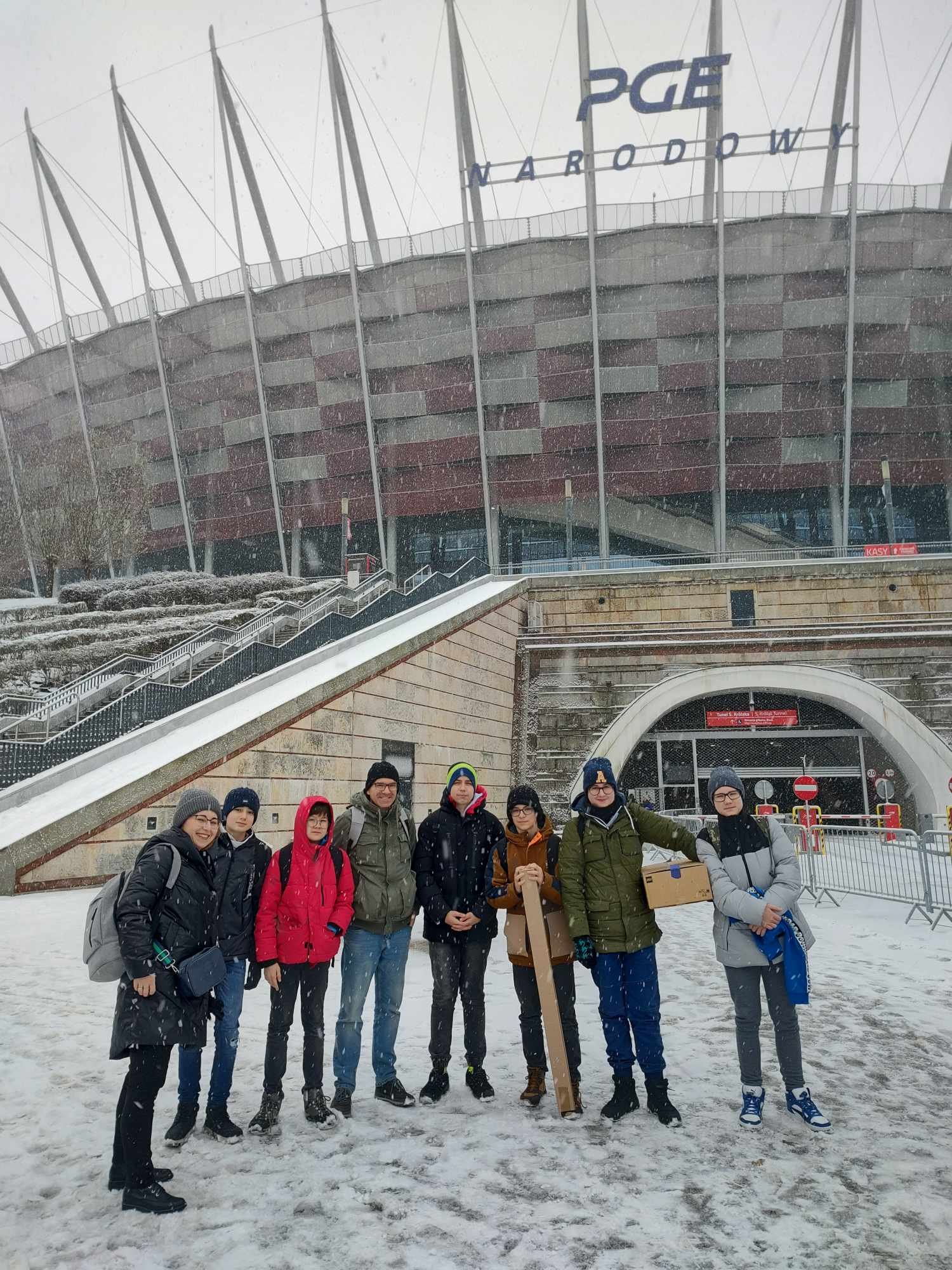 Jako zwycięzcy finałów wojewódzkich udaliśmy się do Warszawy na krajowy finał już 06.12.2023 r., by na spokojnie i bez presji czasu przygotować się do zawodów mistrzowskich. Rankiem, 07.12.2023 r. udaliśmy się natomiast na PGE Stadion Narodowy w Warszawie by wziąć udział w finałach zawodów robotycznych. Warto przypomnieć, że do zawodów zgłosiło się ponad 700 zespołów z całej Polski, które po pierwszym etapie przygotowań, najpierw rywalizowały między sobą na etapie rozgrywek wojewódzkich by ostatecznie zakwalifikować się do finału krajowego. Do ostatniego etapu rywalizacji przystąpiły więc 33 najlepsze zespoły z całej Polski a wśród nich także nasza drużyna w składzie: Artur Będzikowski, Wiktor Chyliński, Filip Filipiak, Franek Gajewski, Olek Krajewski i Franek Pajewski z klasy 7B.