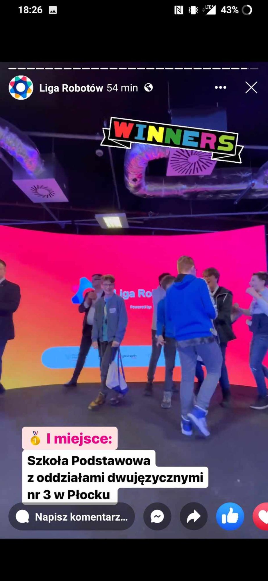 Wygraliśmy! Jesteśmy Mistrzami Polski w Lidze Robotów 2023 – ogólnopolskim konkursie robotycznym zorganizowanym przez ORE w Warszawie i MEiN.