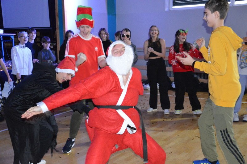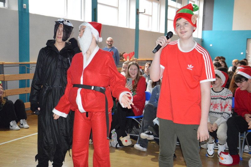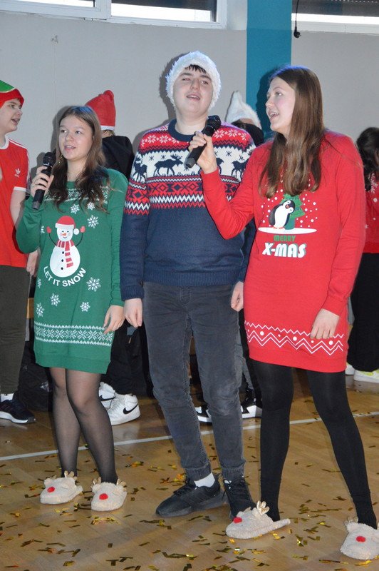 13 grudnia 2023 okazał się bardzo szczęśliwą datą dla uczniów Szkoły Podstawowej nr 3. Po raz kolejny uczniowie rozkręcili zabawę w rytmie świątecznych utworów. Fantastyczne stroje i nastroje przerodziły się w zabawę na całego. Trzecie miejsce zajęli ex aequo Adam Mroziewicz 6 a, Maja Książek, Magda Wiśniewska, Tosia Burdon 8c Nadia Skierska, Natalia Kulińska 7b Drugie miejsce zdobyły Magda Rachowicz i Kinga Krusiewicz 7b Natomiast Show skradli kształtny Mikołaj – Bartek Nowakowski, Adam Strubiński i Miłosz Palczewski 8b
