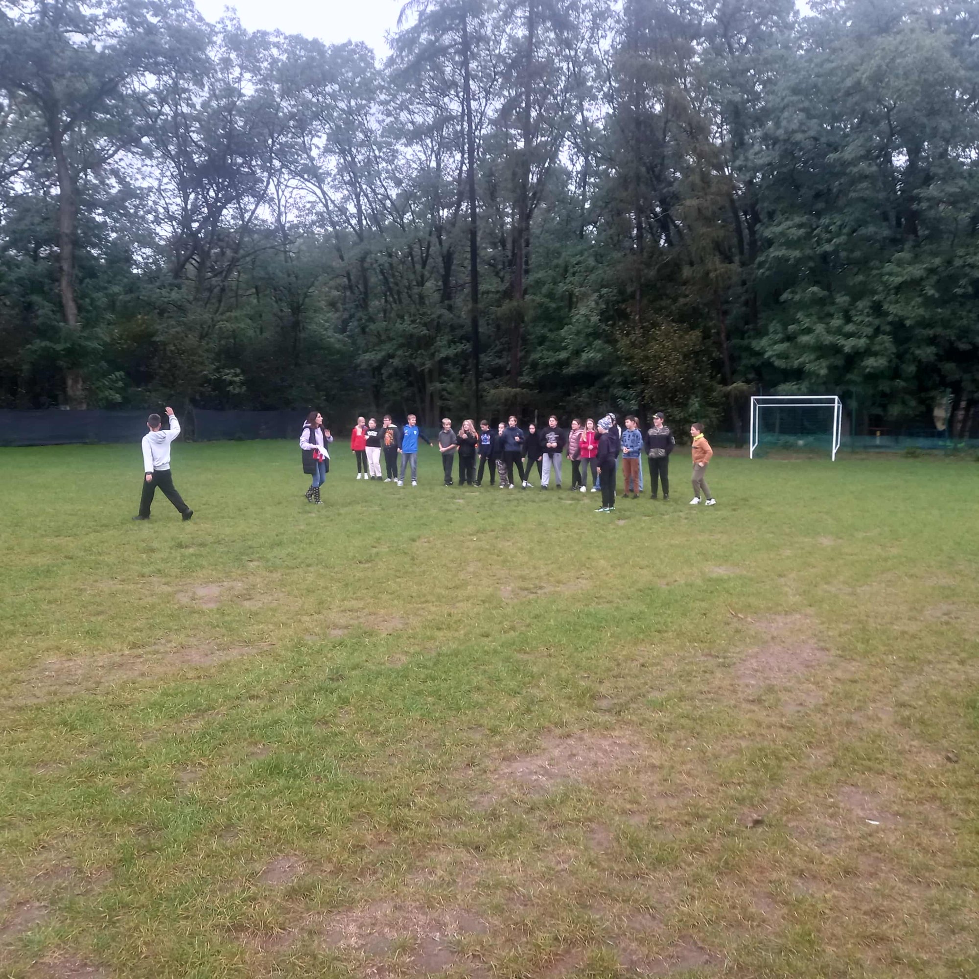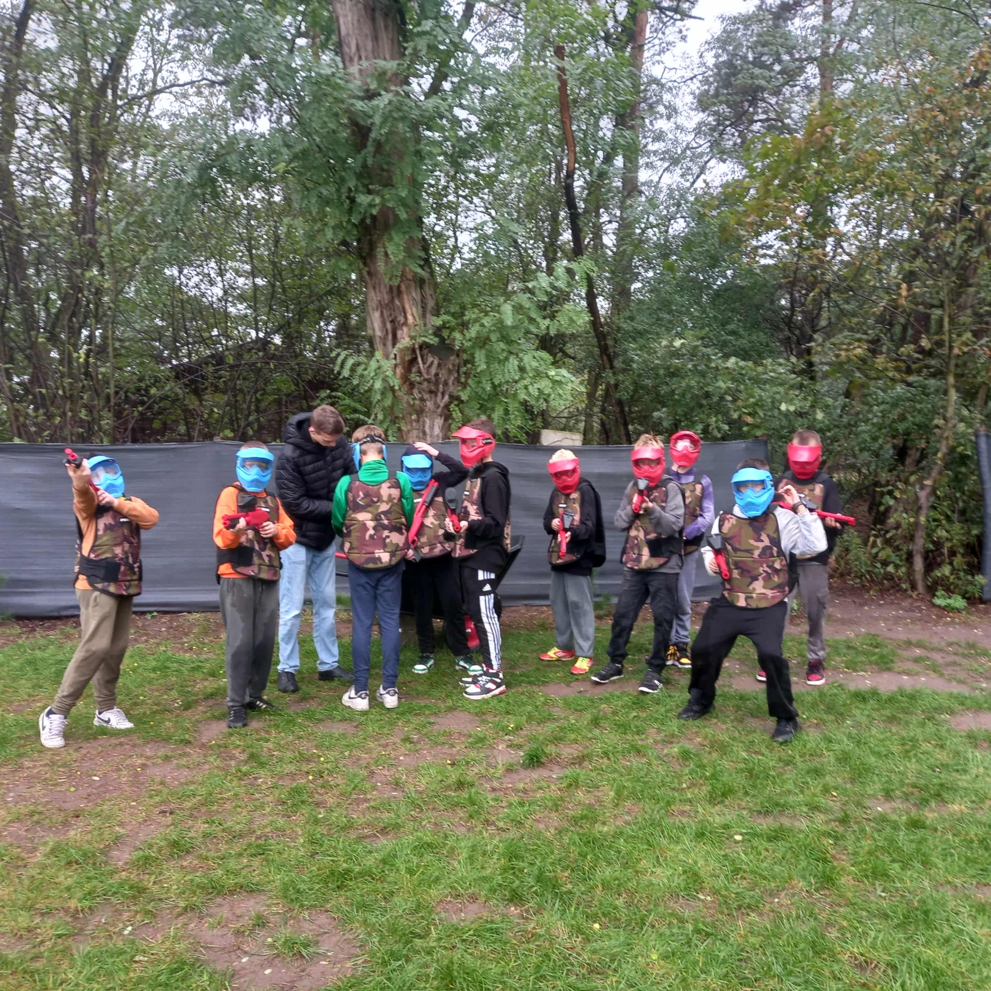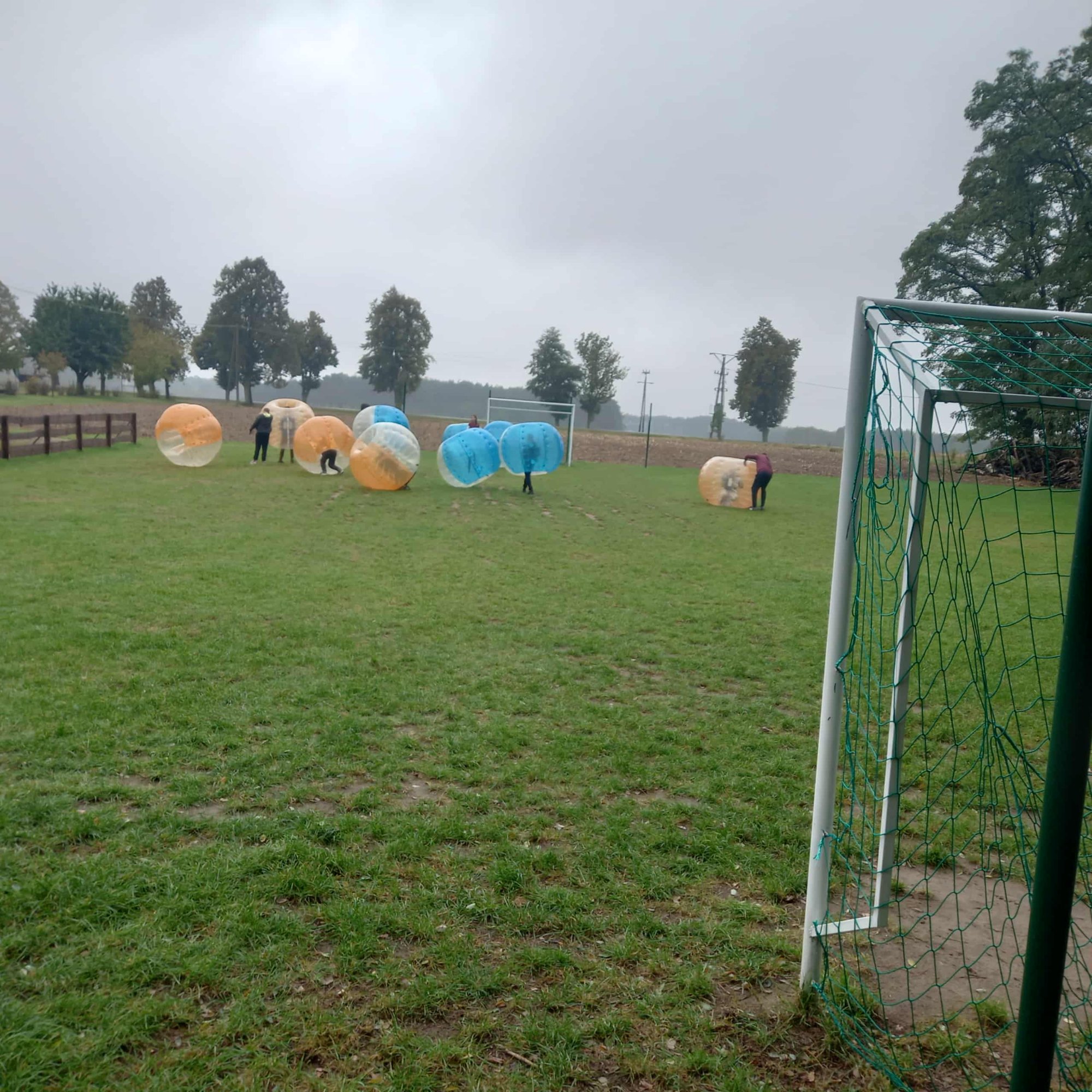 Uczniowie zaczęli od gier i zabaw integracyjnych, a potem w mniejszych grupach wzięli udział w grze terenowej. Potem korzystali z dostępnych atrakcji – kuli bumper ball, paintballu, tyrolki i trampolin w parku leśnym, a także uczestniczyli w warsztatach i tworzyli breloczki. Pobyt w Ciućkowie zakończyli kiełbaskami z ogniska. Chociaż pogoda nie była zbyt łaskawa, humory dopisywały i wszyscy świetnie się bawili.