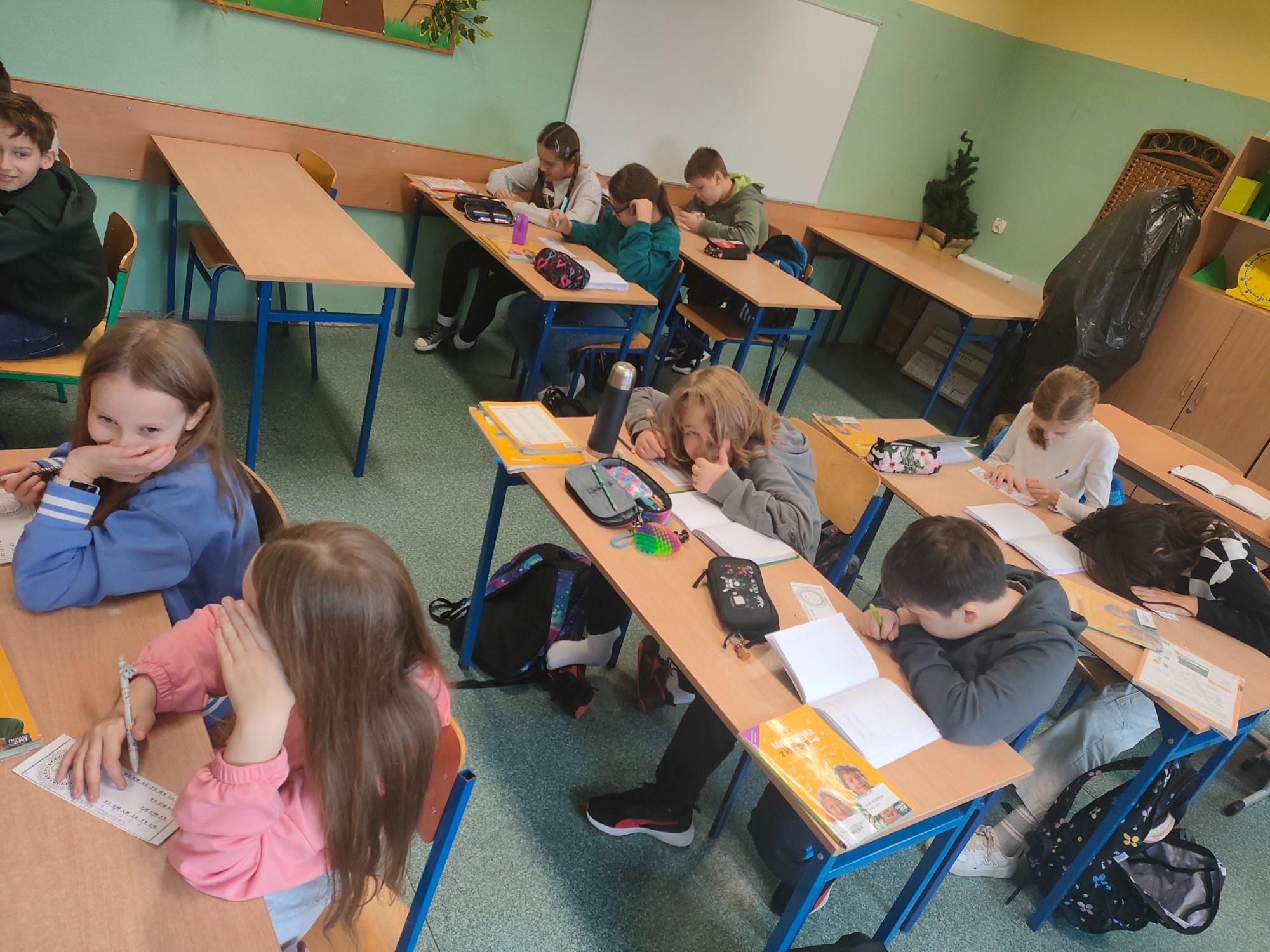 Zadaniem uczniów klas czwartych było rozszyfrować wiadomość zakodowaną przez nauczyciela za pomocą tabliczki mnożenia. Po uporaniu się z tym zadaniem, to uczniowie mogli zaszyfrować swoją wiadomość do nauczyciela. Czwartoklasiści świetnie sobie poradzili z każdym zadaniem, a przy tym świetnie się bawili.