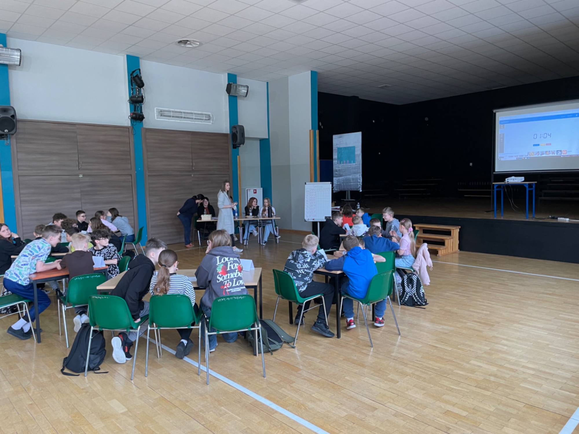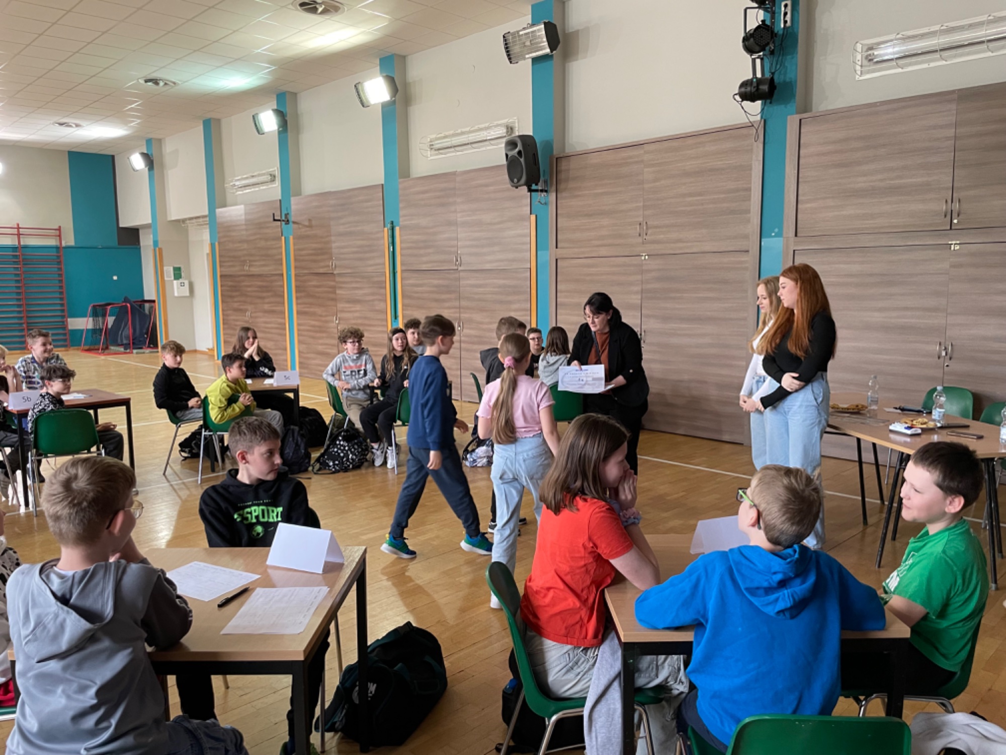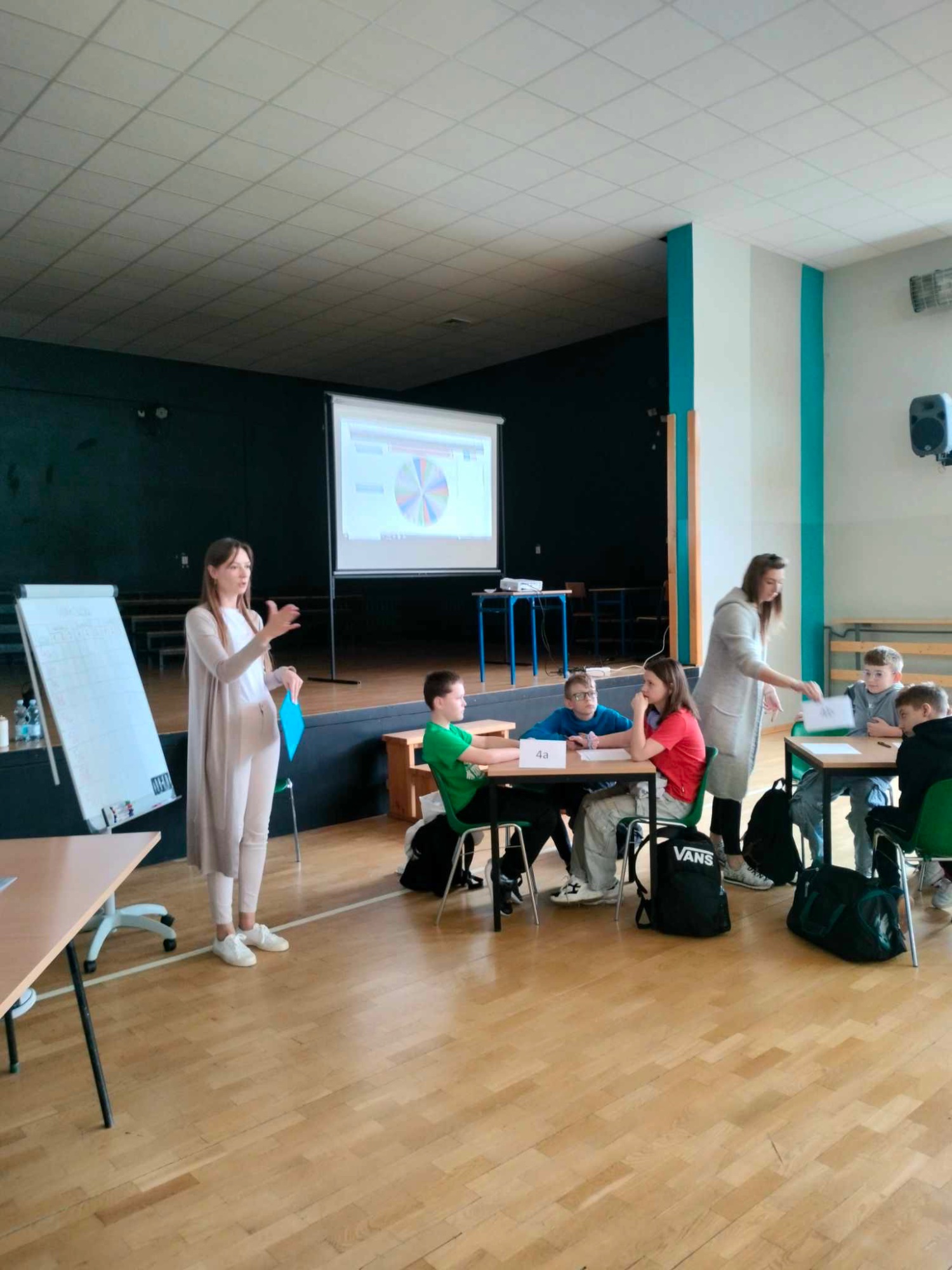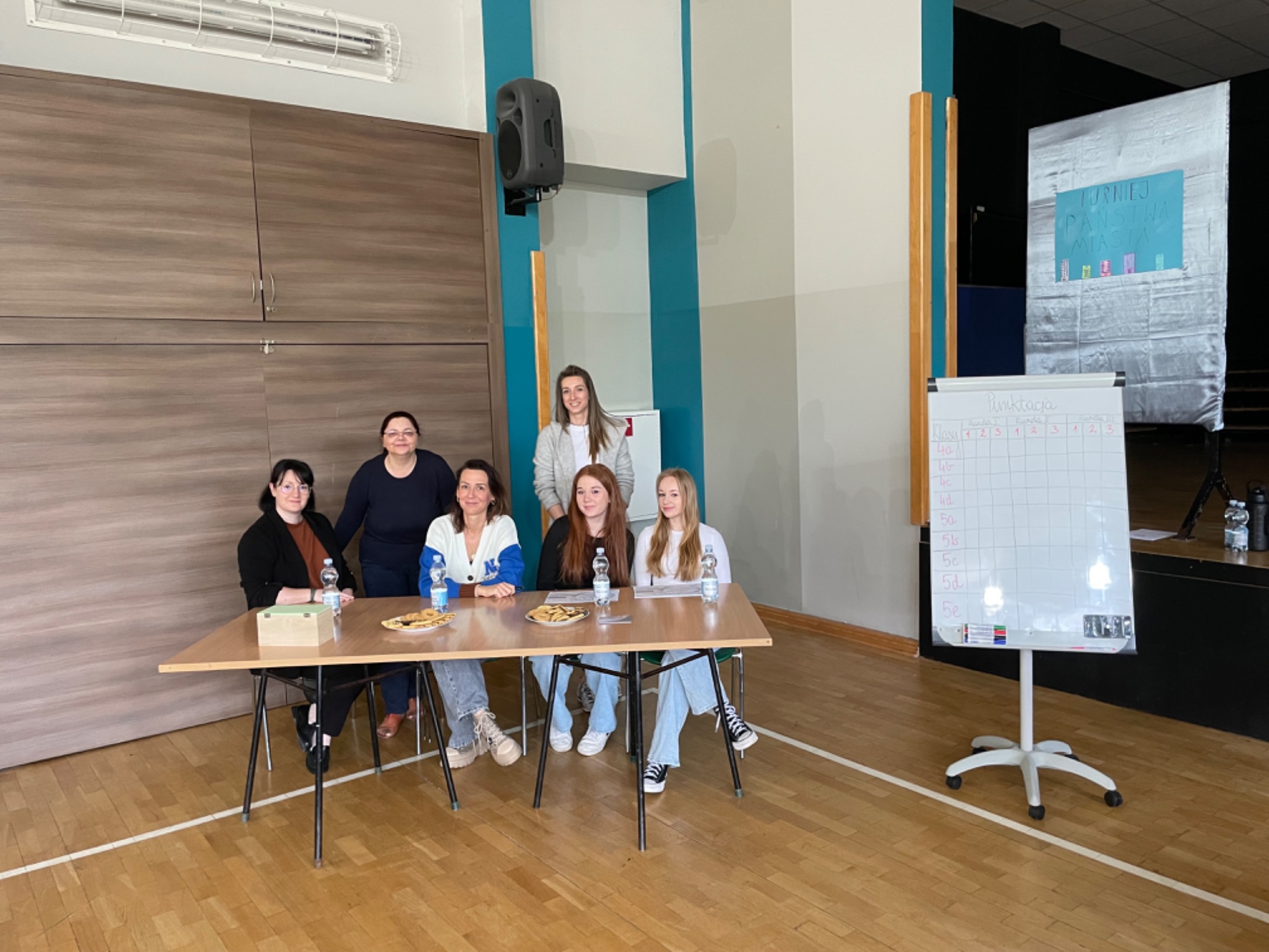 W środę 17.04.2024 w naszej szkole odbył się Turniej Państwa- Miasta. 3 osobowe reprezentacje klas zmierzyły się ze sobą w trzech rundach. W drugiej i trzeciej dolosowywane były kategorie „niespodzianki”. Emocji było co nie miara! Jury prowadziło regularne debaty, uczniowie zaskakiwali oryginalnymi nazwami.