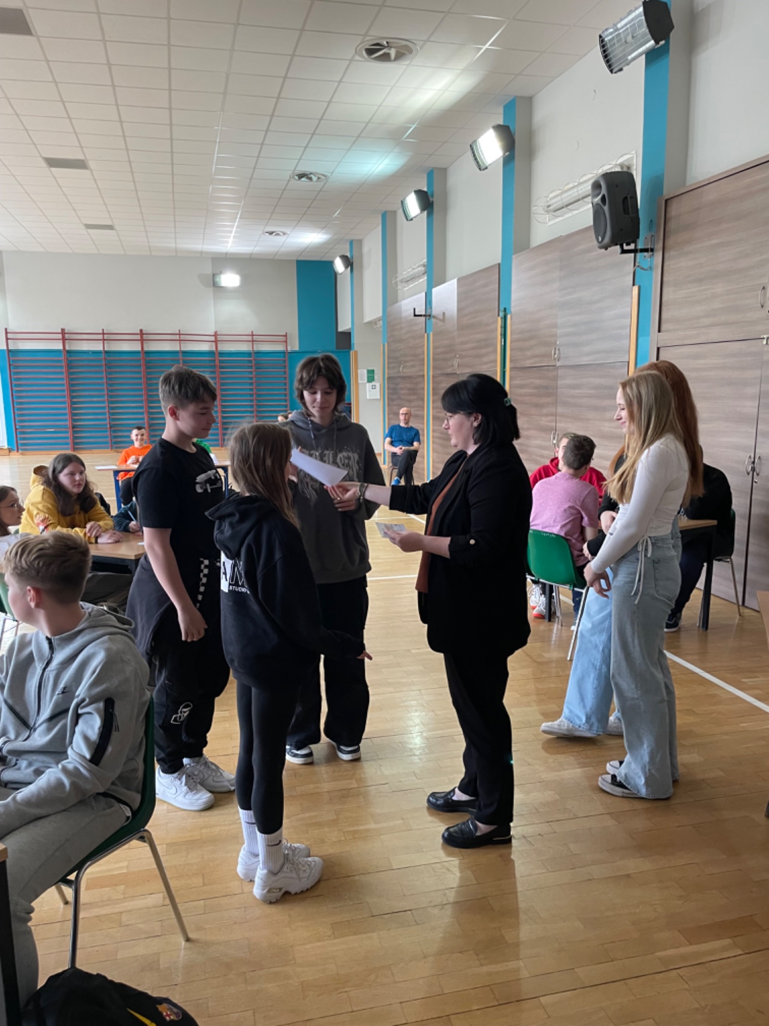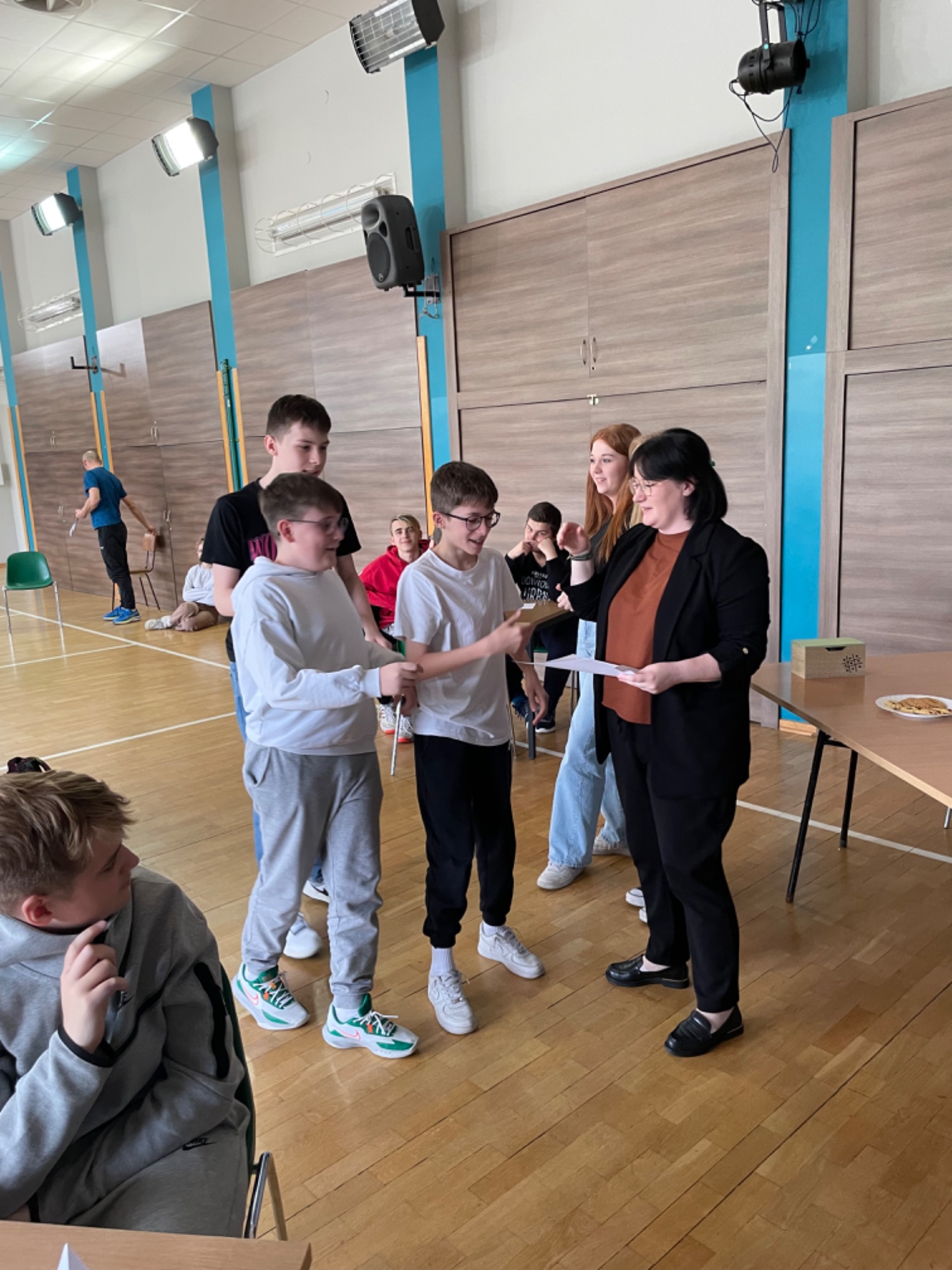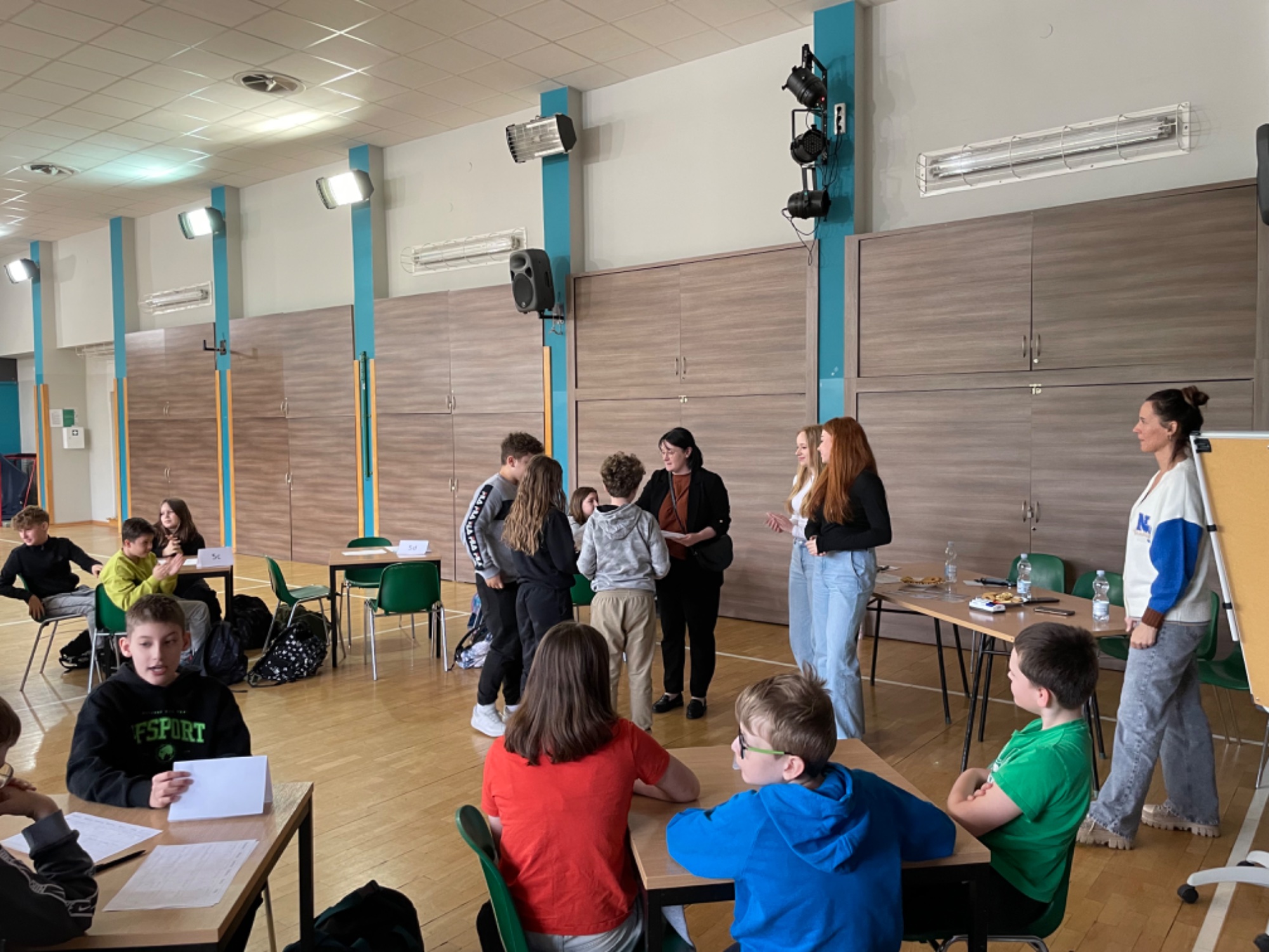 W środę 17.04.2024 w naszej szkole odbył się Turniej Państwa- Miasta. 3 osobowe reprezentacje klas zmierzyły się ze sobą w trzech rundach. W drugiej i trzeciej dolosowywane były kategorie „niespodzianki”. Emocji było co nie miara! Jury prowadziło regularne debaty, uczniowie zaskakiwali oryginalnymi nazwami.