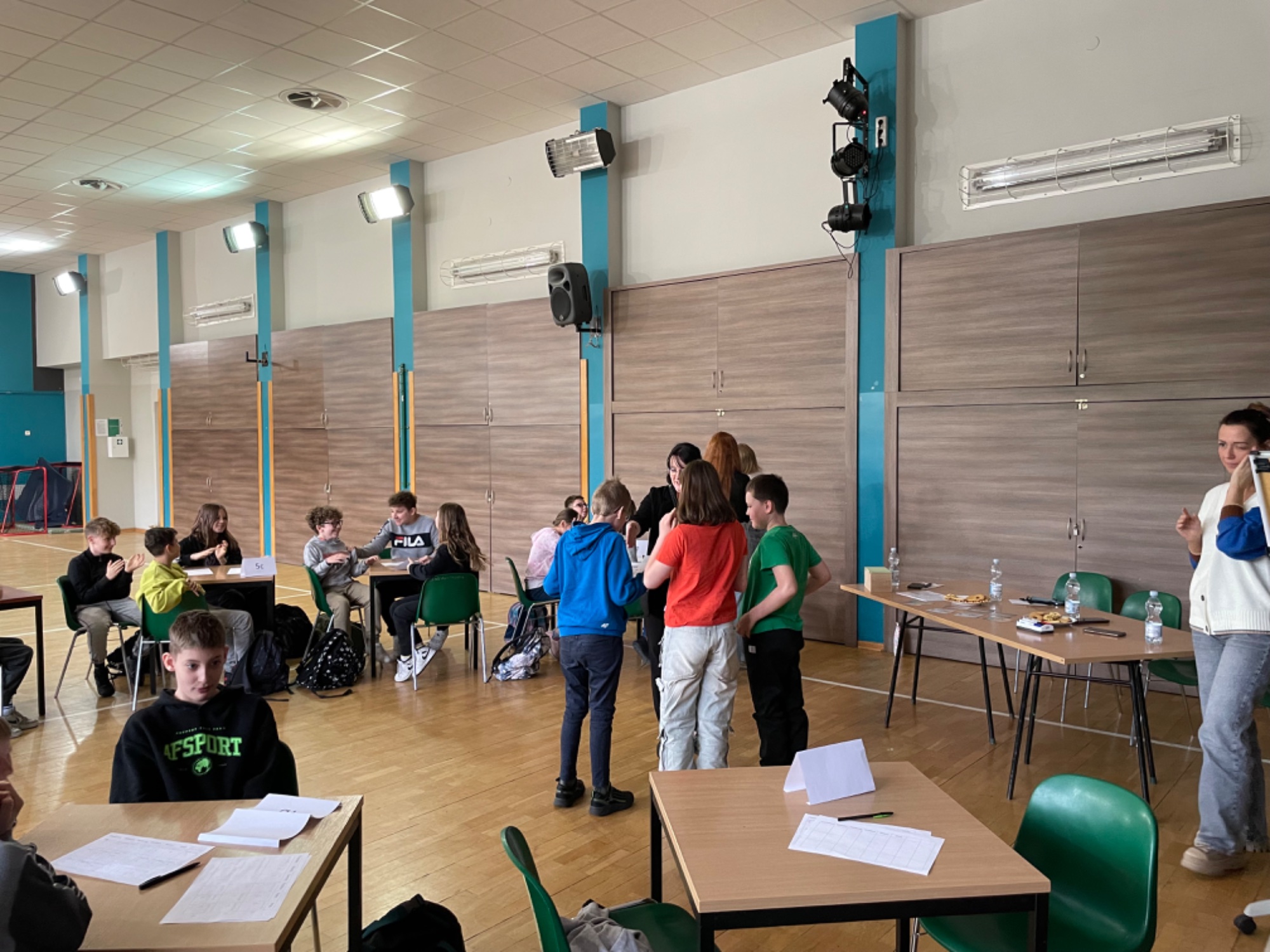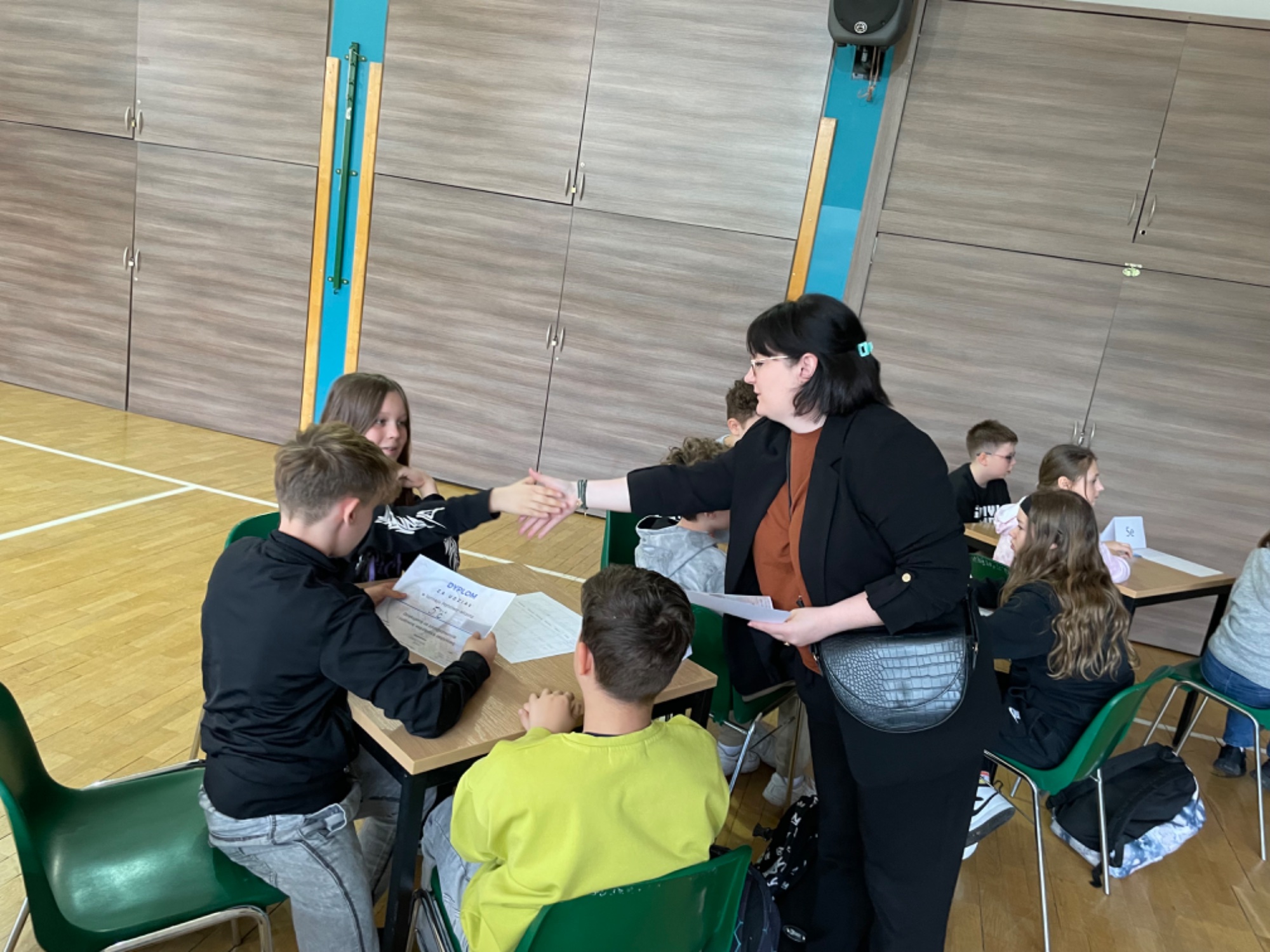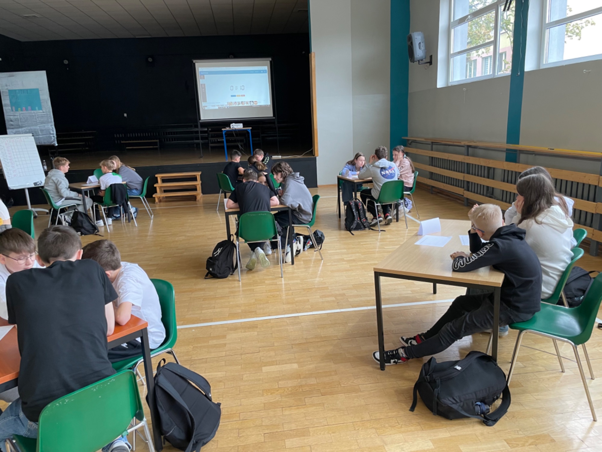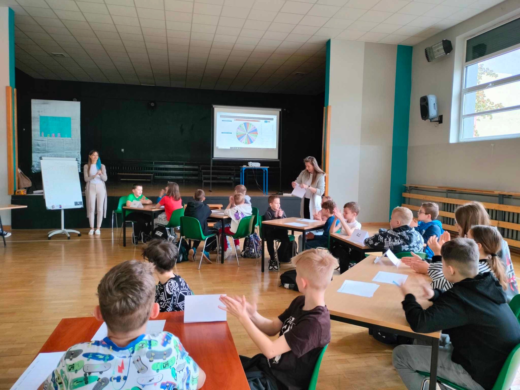 W środę 17.04.2024 w naszej szkole odbył się Turniej Państwa- Miasta. 3 osobowe reprezentacje klas zmierzyły się ze sobą w trzech rundach. W drugiej i trzeciej dolosowywane były kategorie „niespodzianki”. Emocji było co nie miara! Jury prowadziło regularne debaty, uczniowie zaskakiwali oryginalnymi nazwami.