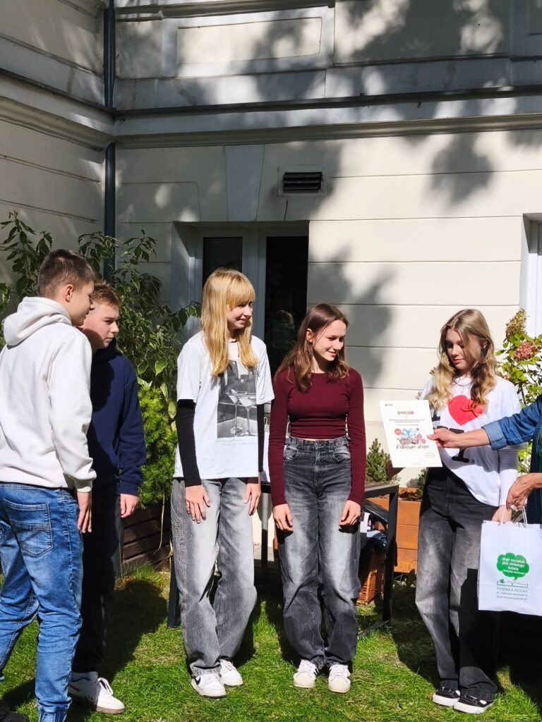 24 września 2025 r. drużyna z klasy 7a reprezentowała naszą szkołę w grze miejskiej zorganizowanej przez Książnicę Płocką. W skład zespołu weszli: Maja Markiewicz, Maja Matuszewska, Amelia Parowińska, Filip Ławicki i Szymon Dąbrowski. Opiekę nad uczniami sprawowała p. Anna Rutkowska.