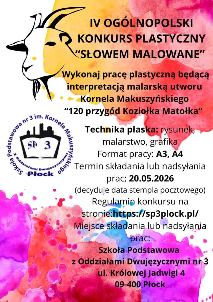 Z radością informujemy o IV edycji ogólnopolskiego konkursu plastycznego „Słowem malowane”, skierowanego do uczniów, którzy chcą rozwijać swoją kreatywność i pasję artystyczną.