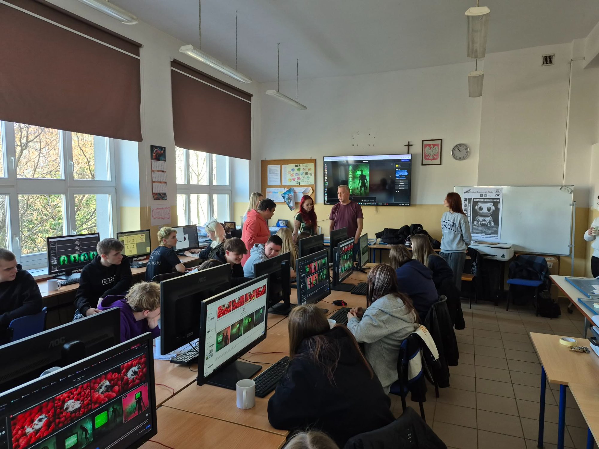 23 lutego 2026 r. klasa 8c wzięła udział w zajęciach pt. „Zastosowanie IA w druku sublimacyjnym” w Zespole Szkół Technicznych „Siedemdziesiątka”. Celem warsztatów było przybliżenie uczniom nowoczesnych technik druku materiałów reklamowych z użyciem sztucznej inteligencji.