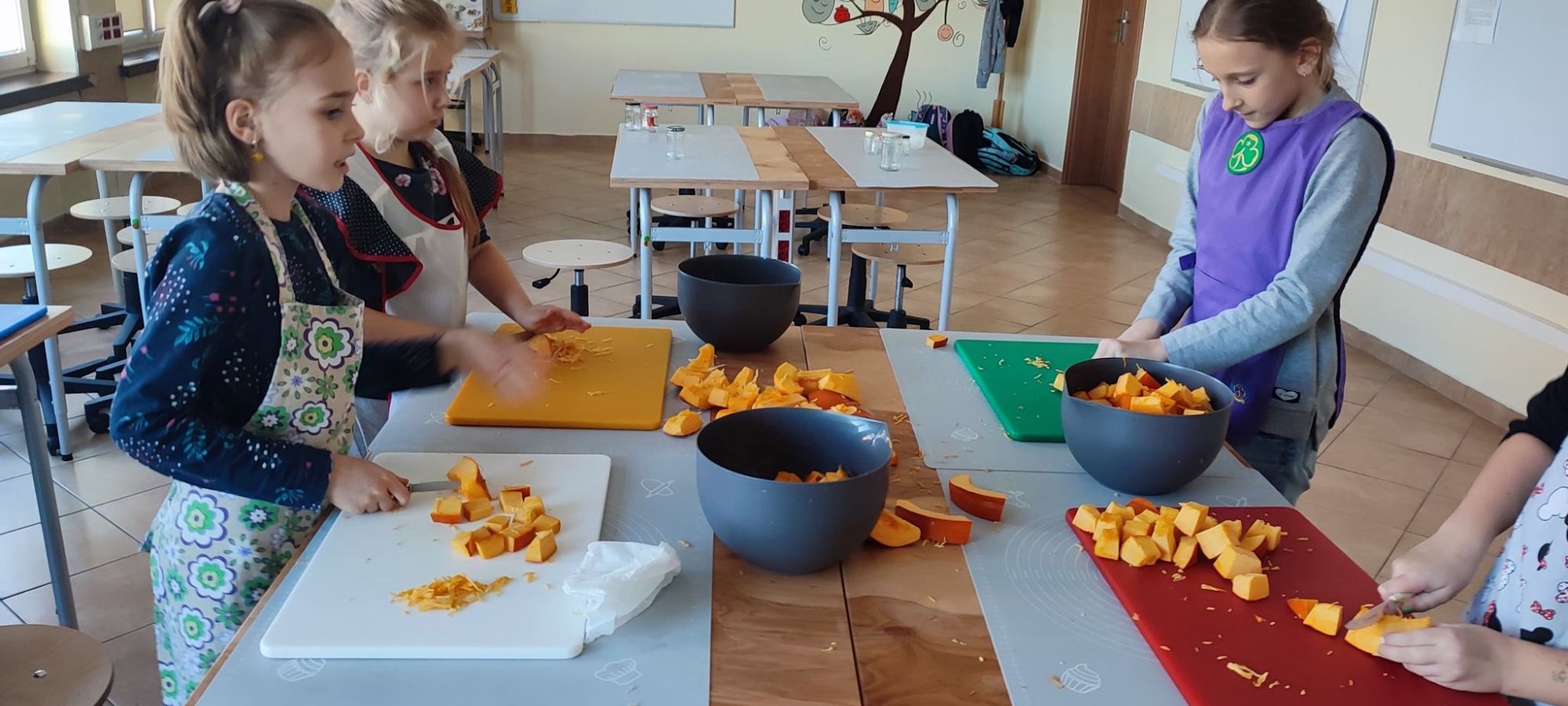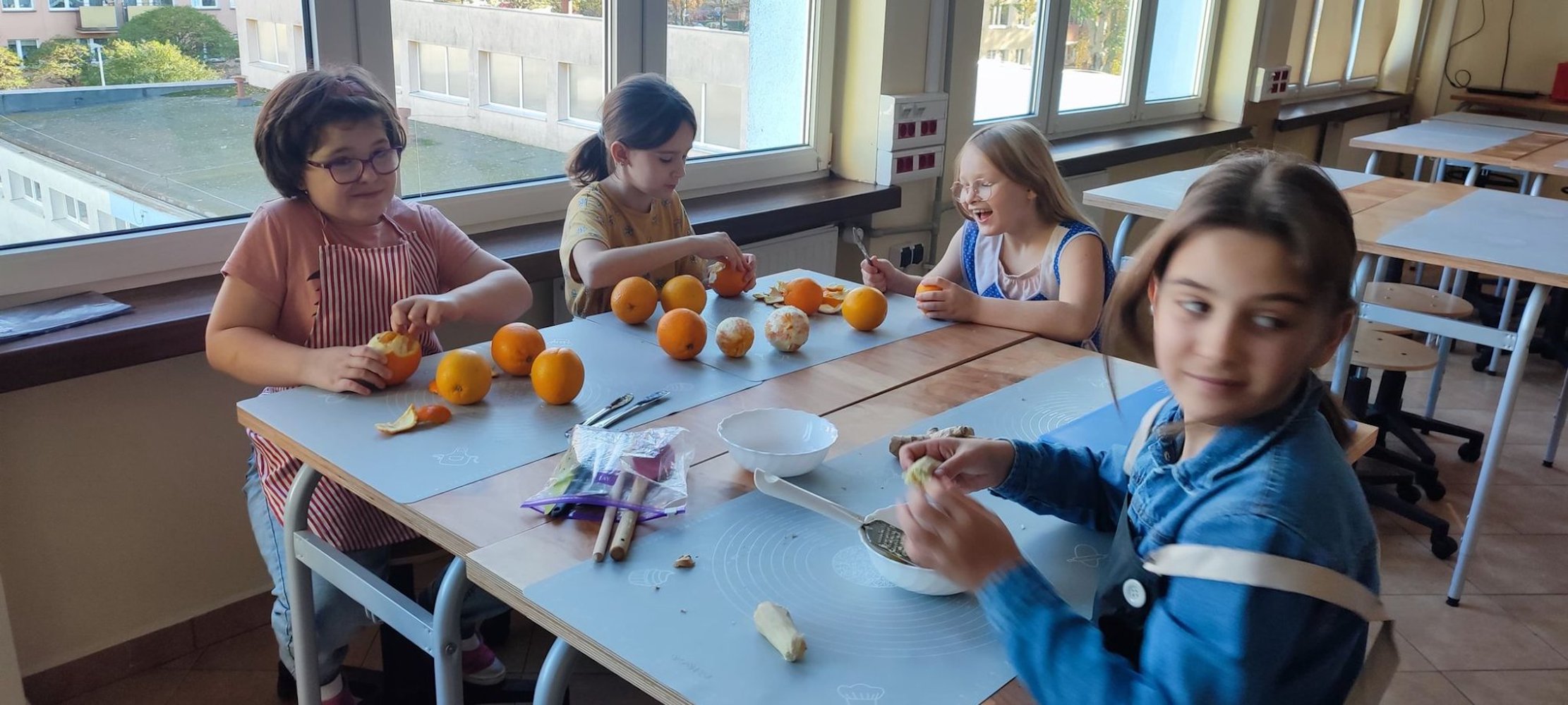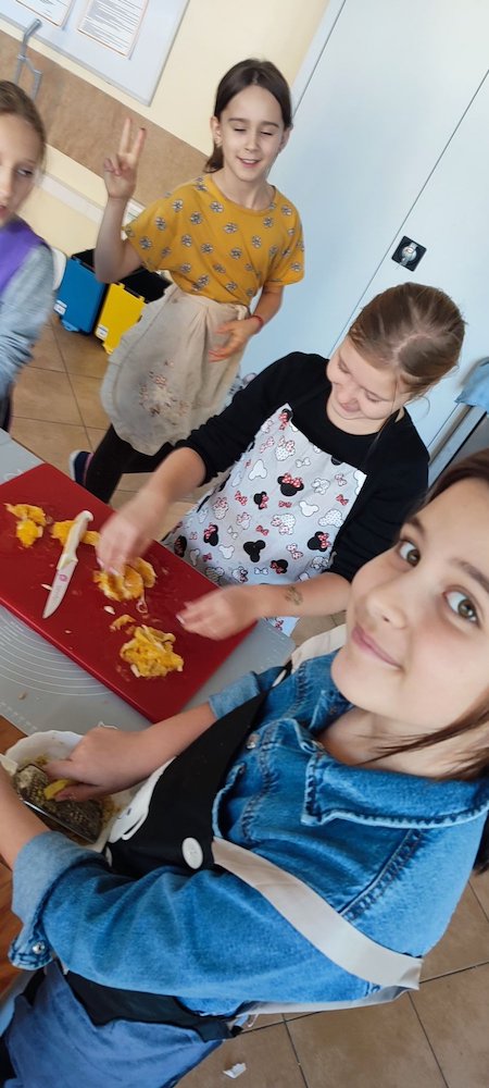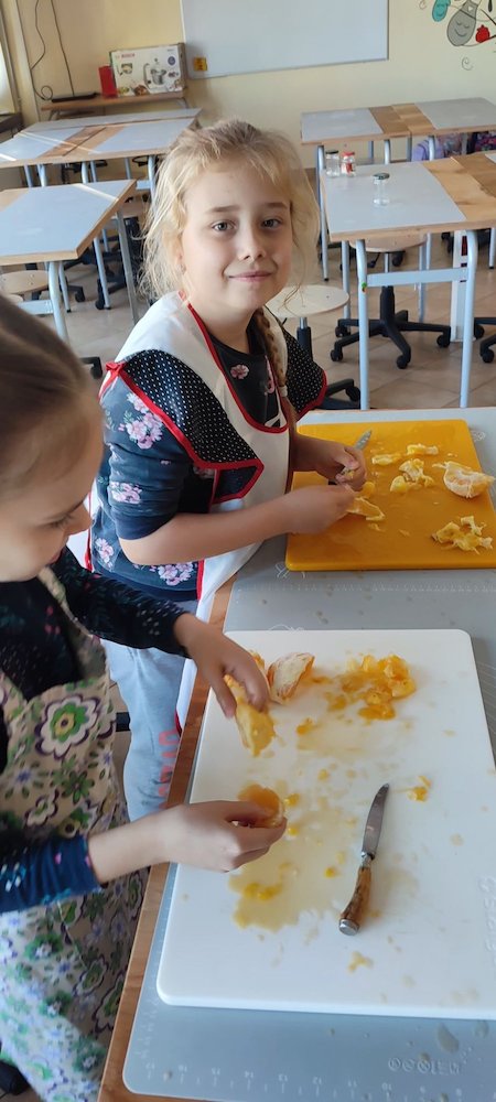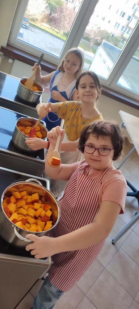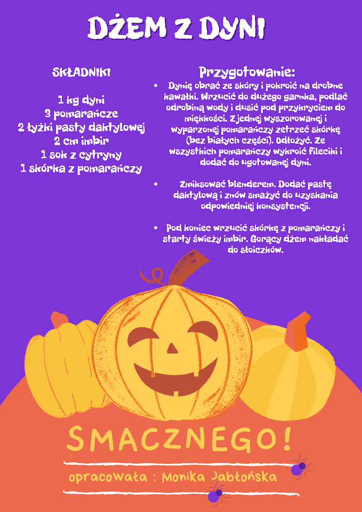 Do naszej pracowni kulinarnej, wkroczyła dynia w zdrowym wydaniu rzecz jasna. To prawdziwa królowa wśród owoców i warzyw z jesiennego ogródka. W towarzystwie słodkiej pomarańczy i pachnącego imbiru będzie smakowała każdemu niejadka. Przed Wami dżem z pomarańczą i imbirem. Pracy nie brakowało, krojenie, filetowanie pomarańczy, ścieranie na tarce, gotowanie, podsmażanie, obieranie, blendowanie…i wreszcie jedzenie :). Jak widzicie nowe umiejętności sprawiają nam wiele radości.